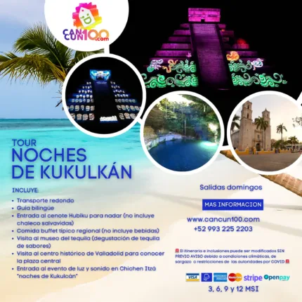 GRATIS · Tour completo y exclusivo. · Reserva con cupo limitado.Noches de KUKULCAN – Espectáculo de Luces en CHICHEN ITZA – Show Nocturno