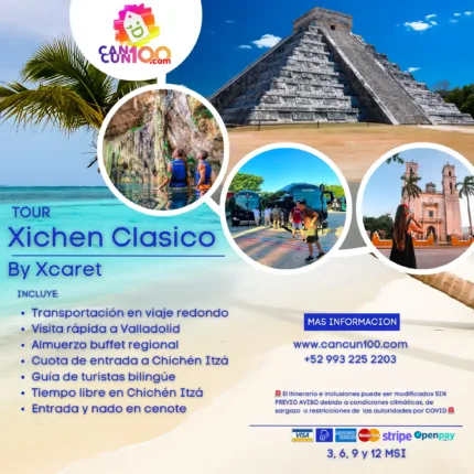 Descubre Chichén Itzá de forma completa y accesible con el Tour Xichén Clásico. Transporte cómodo, guía certificado y visita a cenote y buffet. ¡Ideal para conocer la cultura maya!