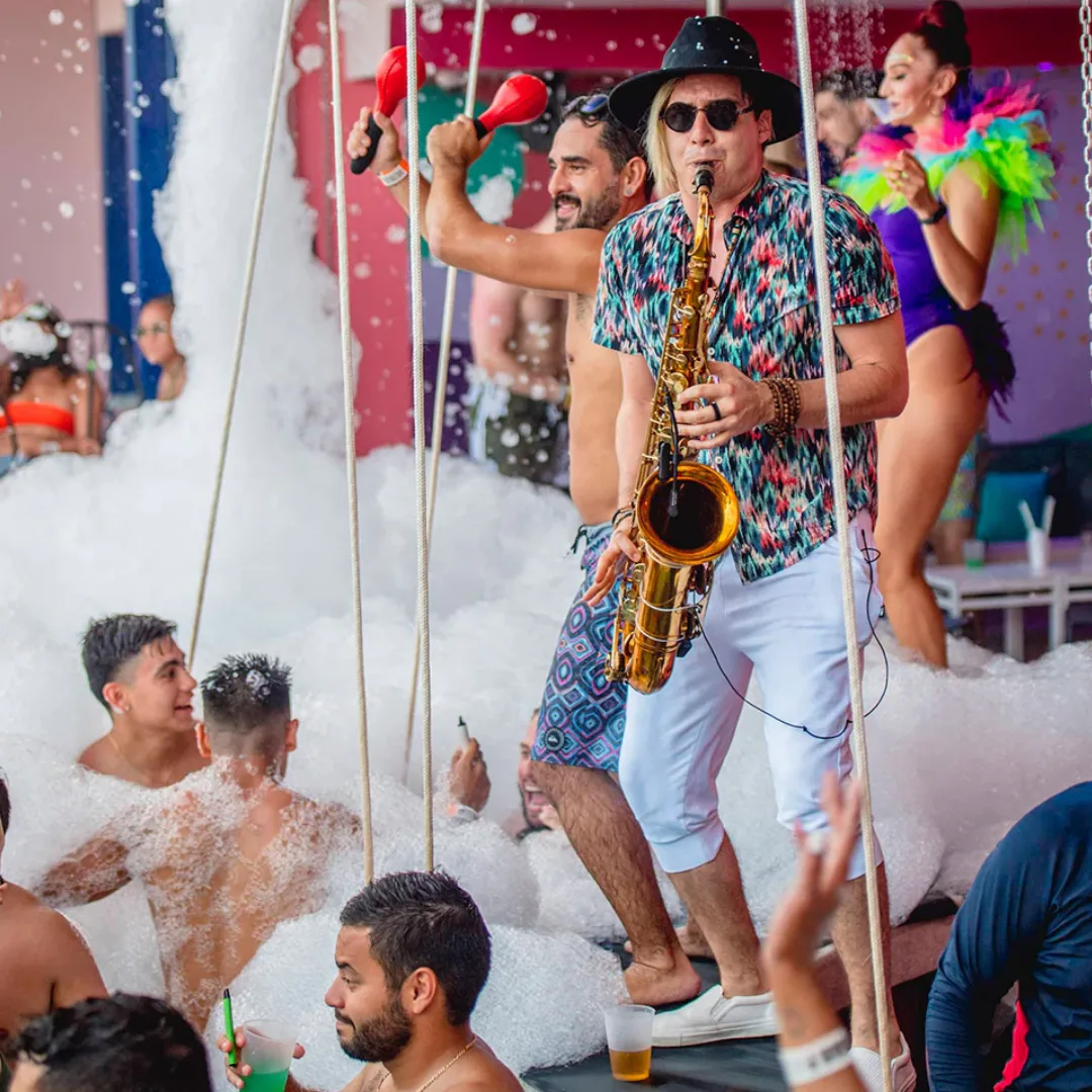 - Shows, animación, juegos, espuma y happenings durante toda la fiesta.