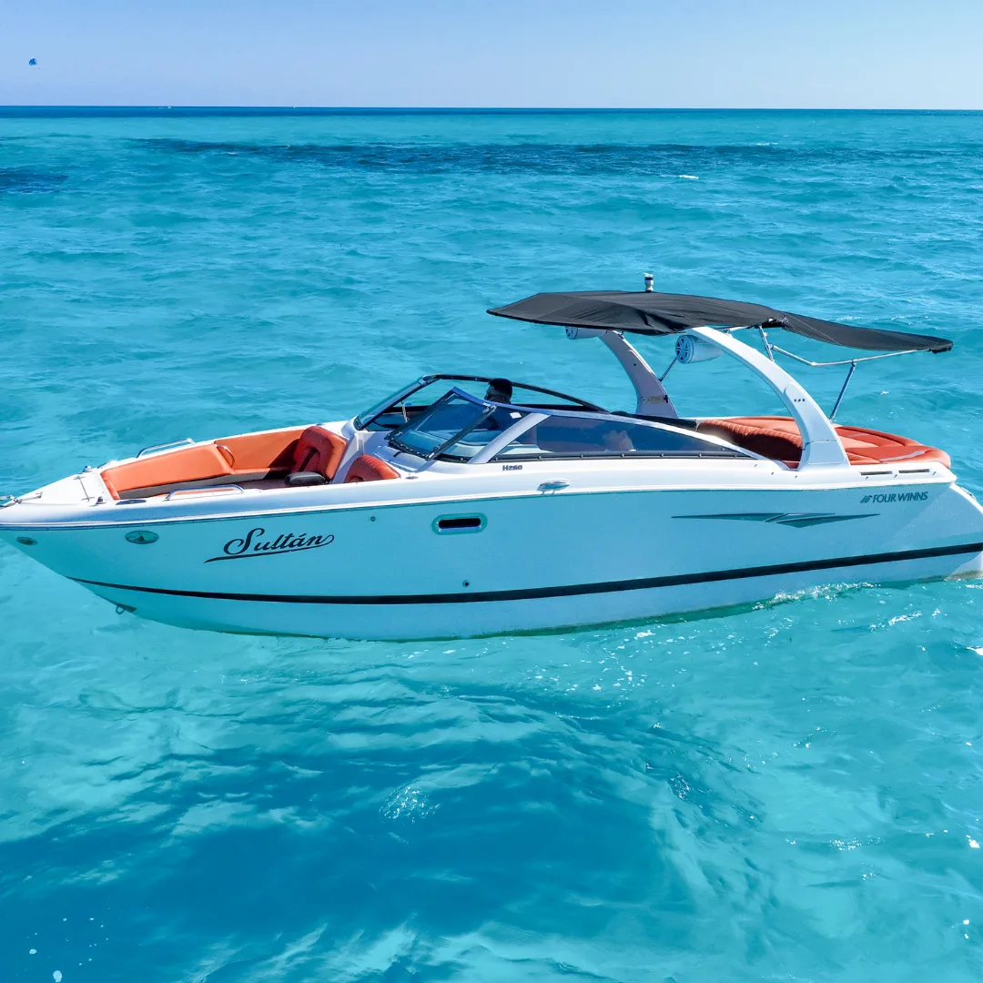 Vive una experiencia privada en el mar Caribe a bordo del Luxury 27ft Yacht Sultan, un yate de lujo perfecto para celebrar en pareja, con amigos o en familia. Disfruta las aguas turquesa de Cancún, la laguna Nichupté o la ruta hacia Isla Mujeres con toda la comodidad de un yate equipado y bebidas incluidas.