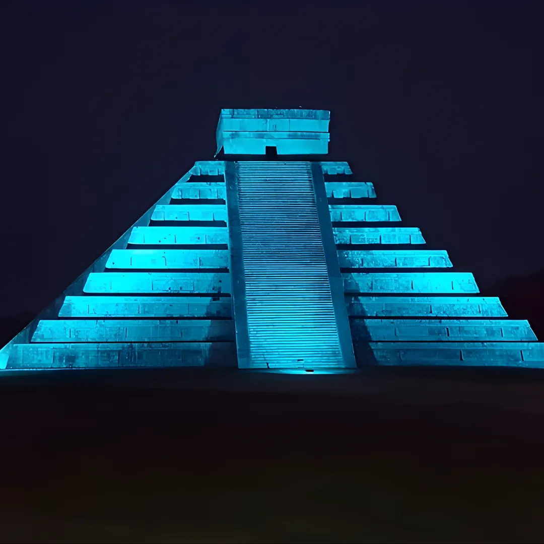 Al caer la tarde te dirigirás hacia la zona arqueológica para vivir el momento más esperado: la entrada al evento de luz y sonido en Chichén Itzá “Noches de Kukulcán”. La pirámide de Kukulcán se ilumina con proyecciones y audio que cuentan la historia de la antigua civilización maya, creando una atmósfera mágica en la oscuridad de la noche.
