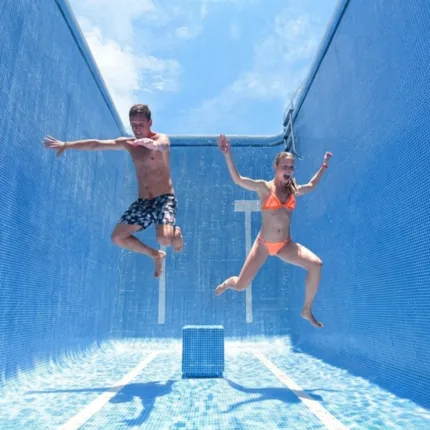 Relájate en las zonas VIP con camastros y hamacas, disfruta barra libre nacional, comida buffet, alberca infinity y actividades como snorkel, kayaks, paddle board y tirolesas ilimitadas en el Parque Garrafón, operado por Dolphin Discovery.