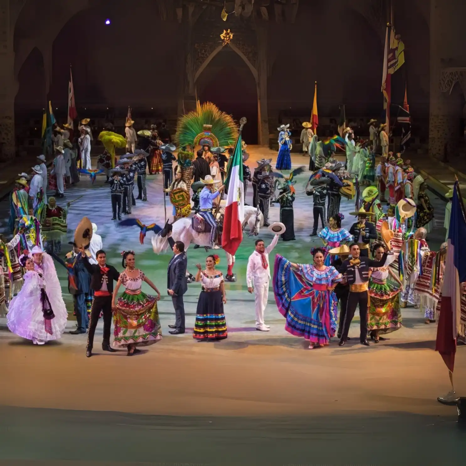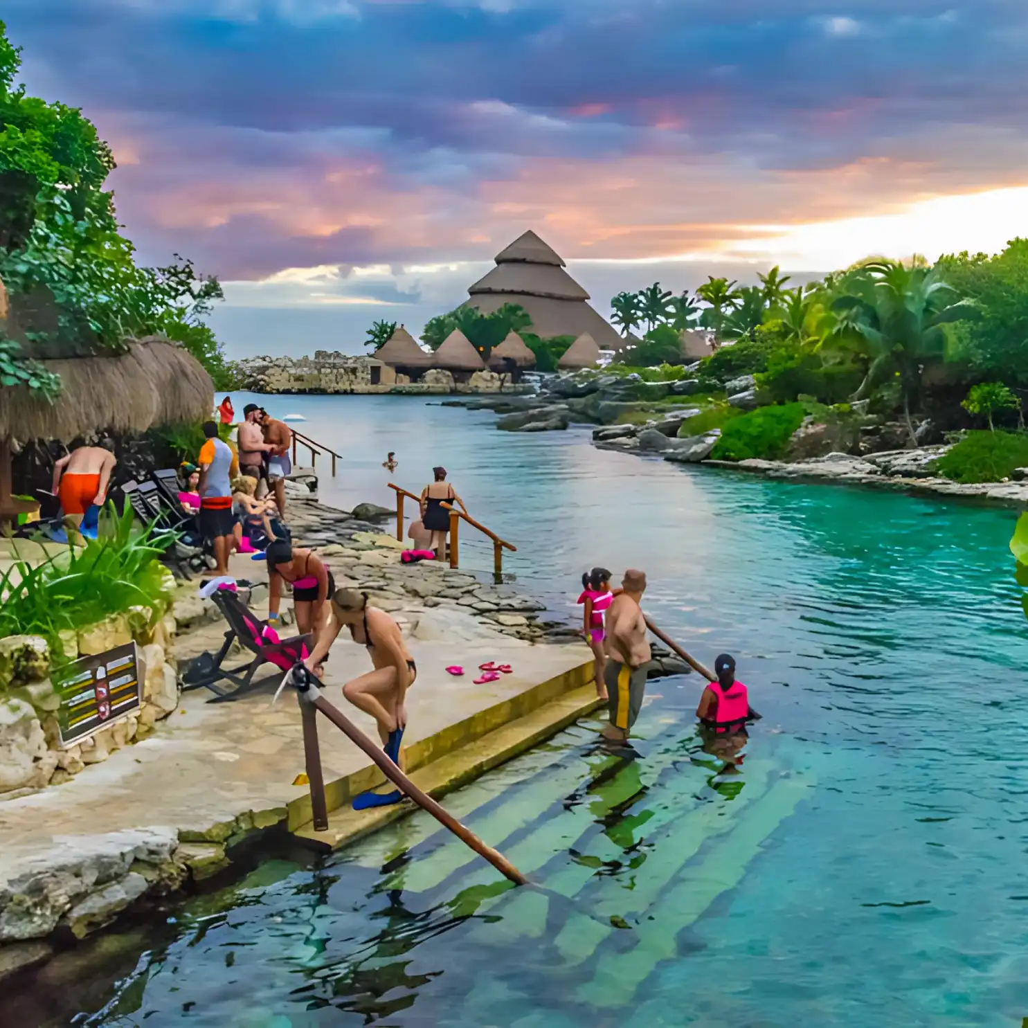 Xcaret no es solo un parque, es una celebración de México. Es el único lugar donde en un solo día puedes nadar en ríos subterráneos, maravillarte con la fauna local (jaguares, manatíes, tortugas), explorar ruinas mayas, sentir la adrenalina en actividades acuáticas y culminar con el show "México Espectacular", un viaje musical por la historia y el folclore de todo el país que te pondrá la piel chinita.